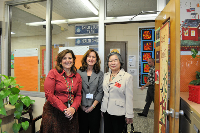 GESSO和UAPECA教育机构的朱迪博士造访美国大纽约地区顶尖学区,与学区总监Browne博士互赠科技教育器材,以及与学区Reynolds School校长的合影。
